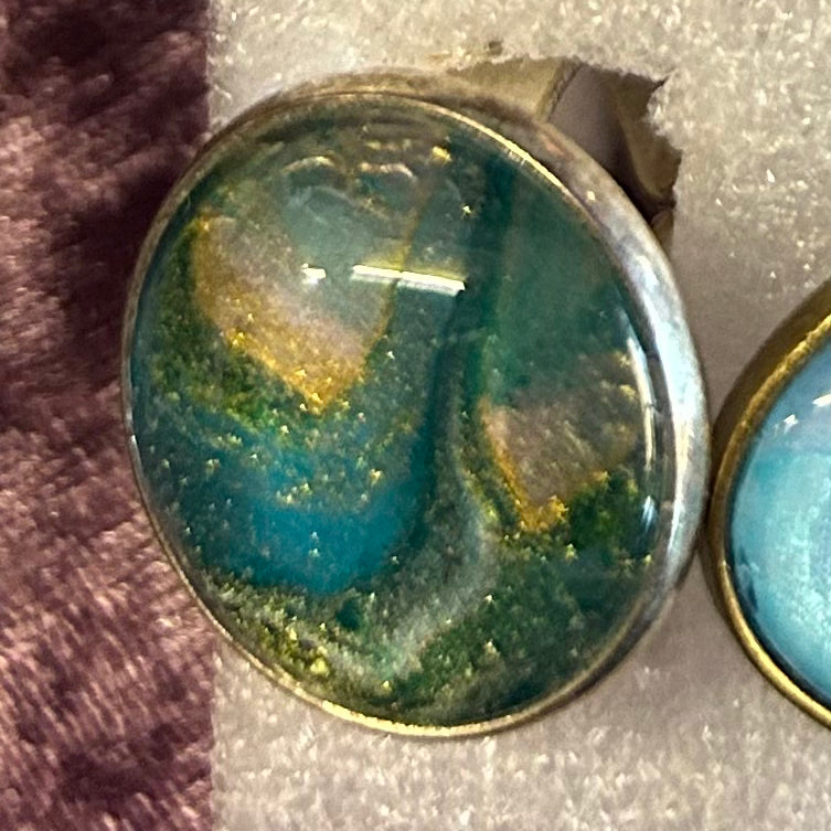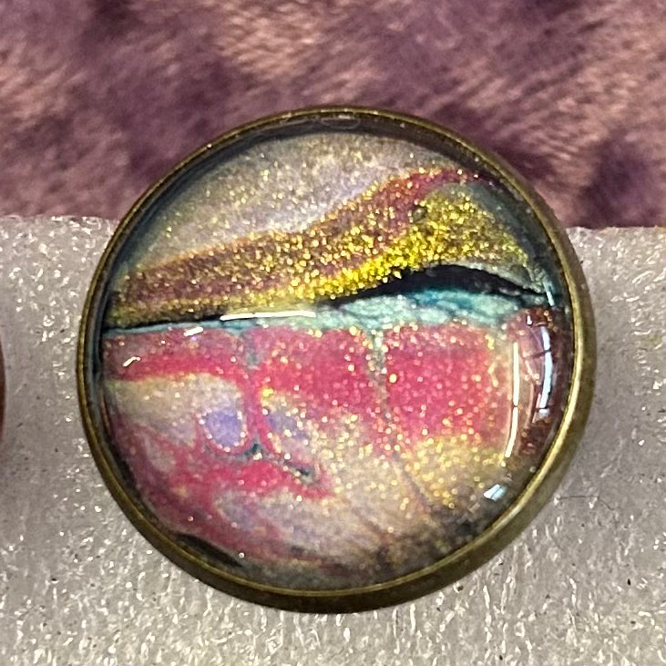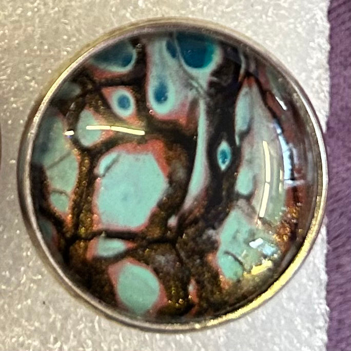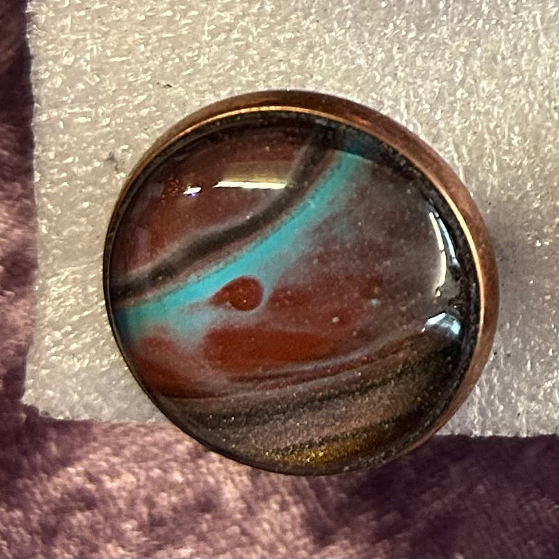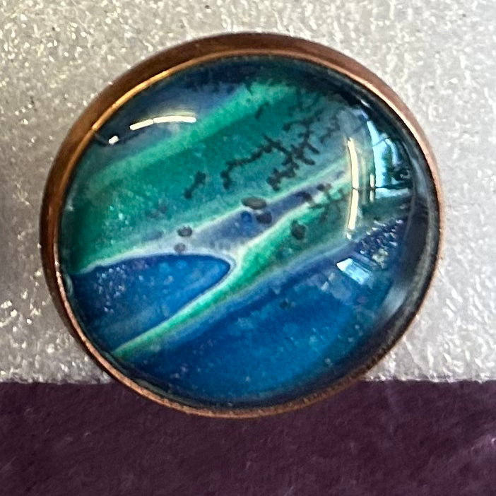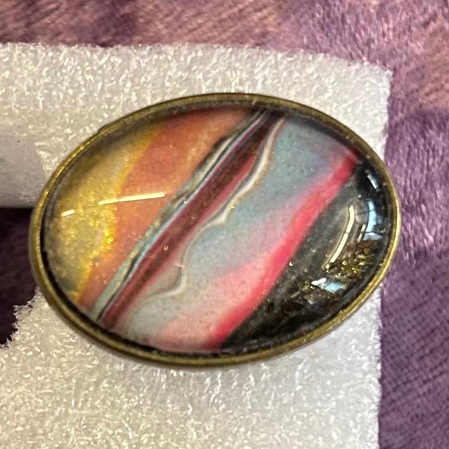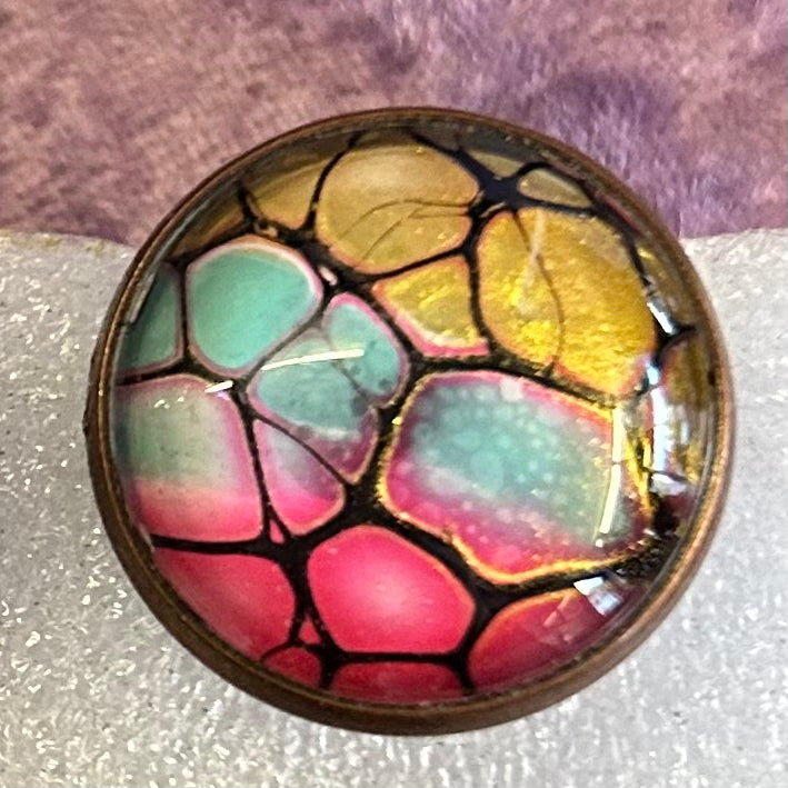 Hand painted adjustable ring made with acrylic paint and sealed with resin