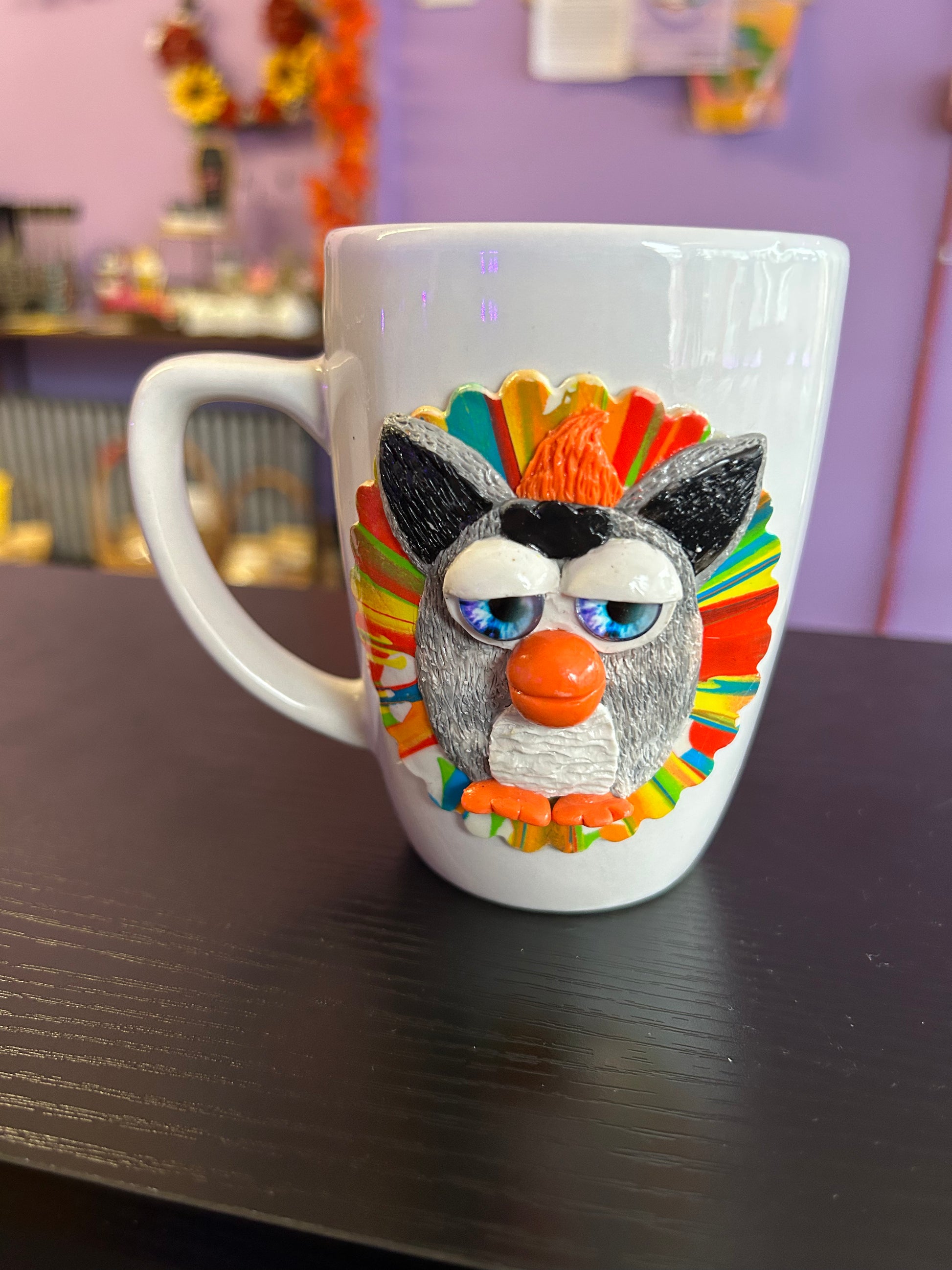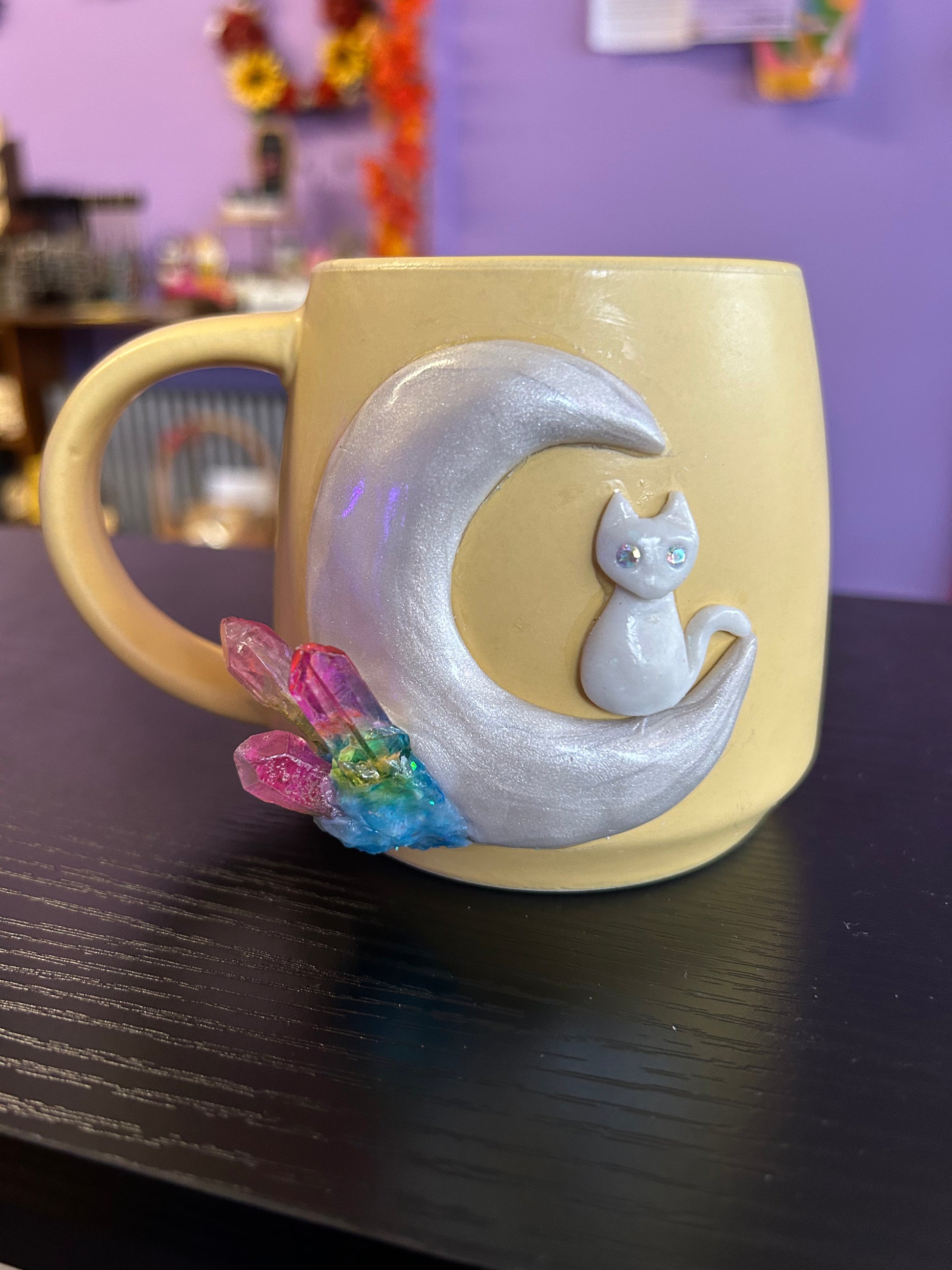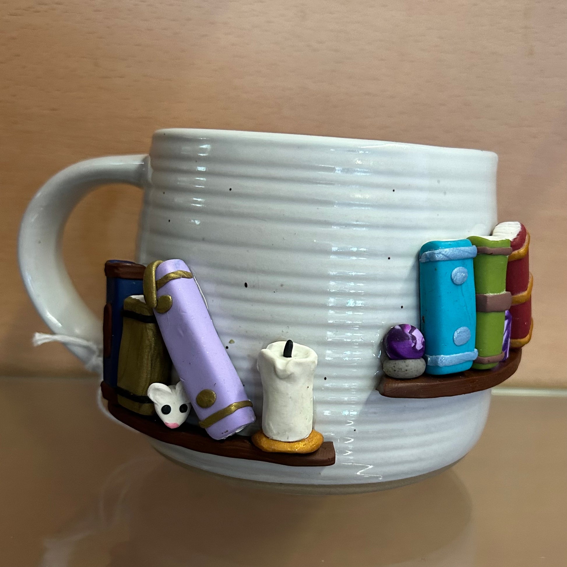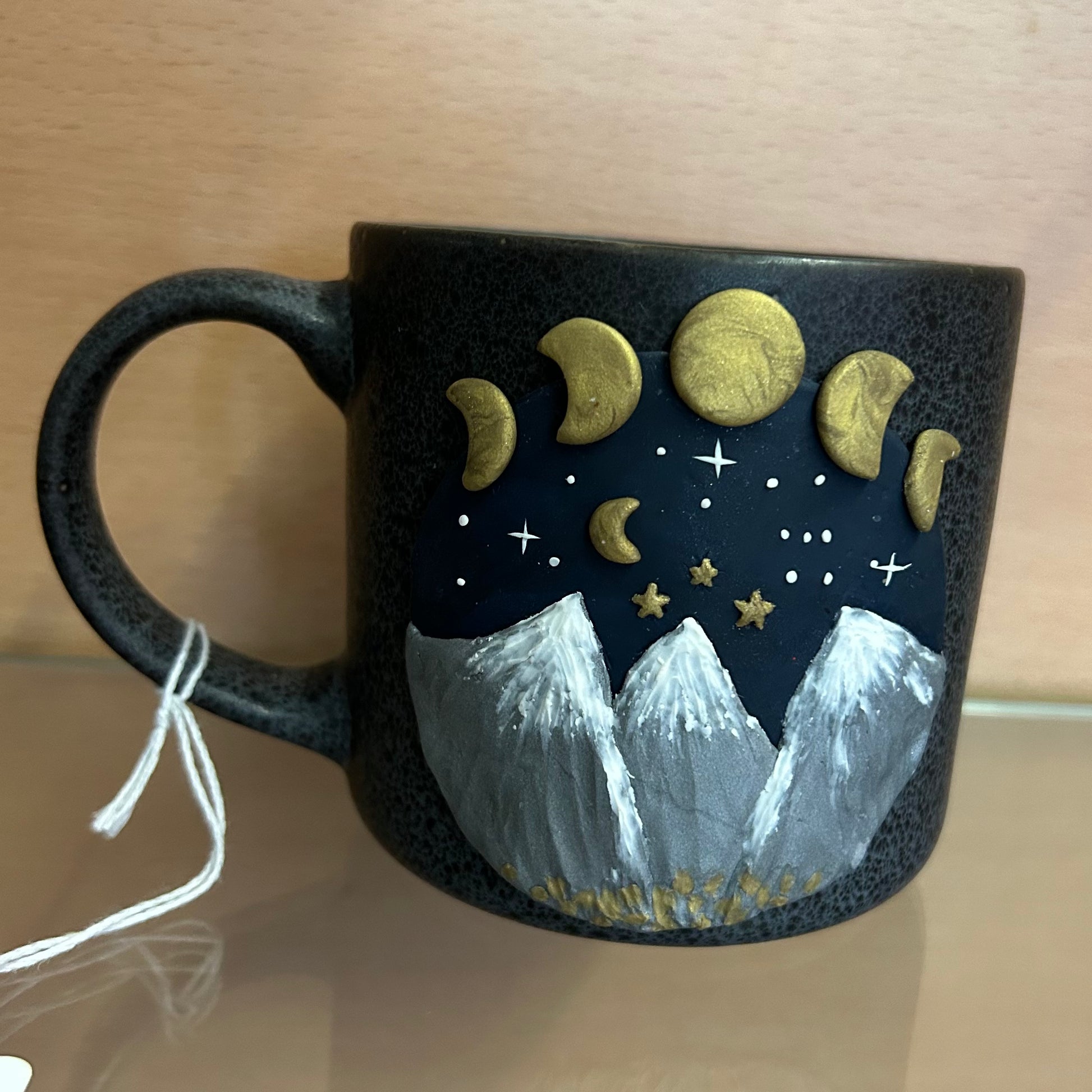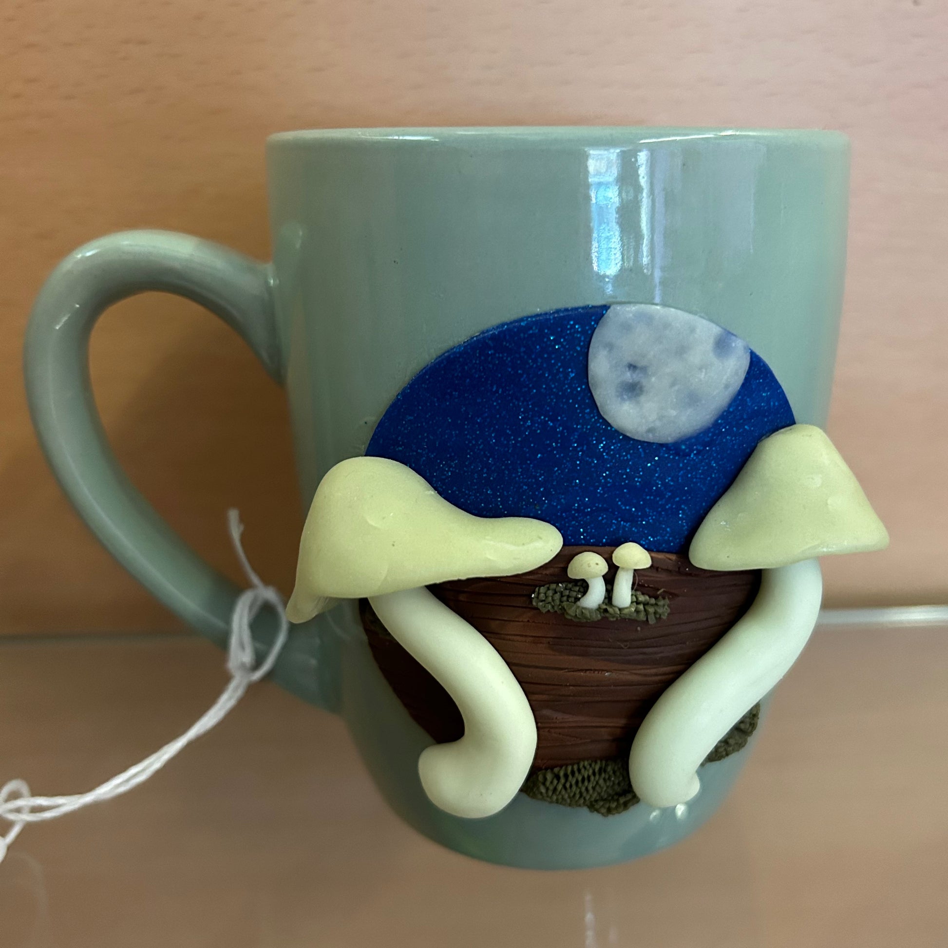 Handmade mug with clay accent made by Wishful Creations