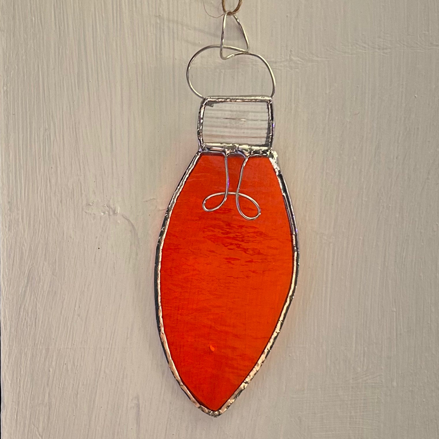 Handmade stained glass Christmas light bulb ornament. Each ornament is hand crafted so each ornament is one-of-a-kind.
