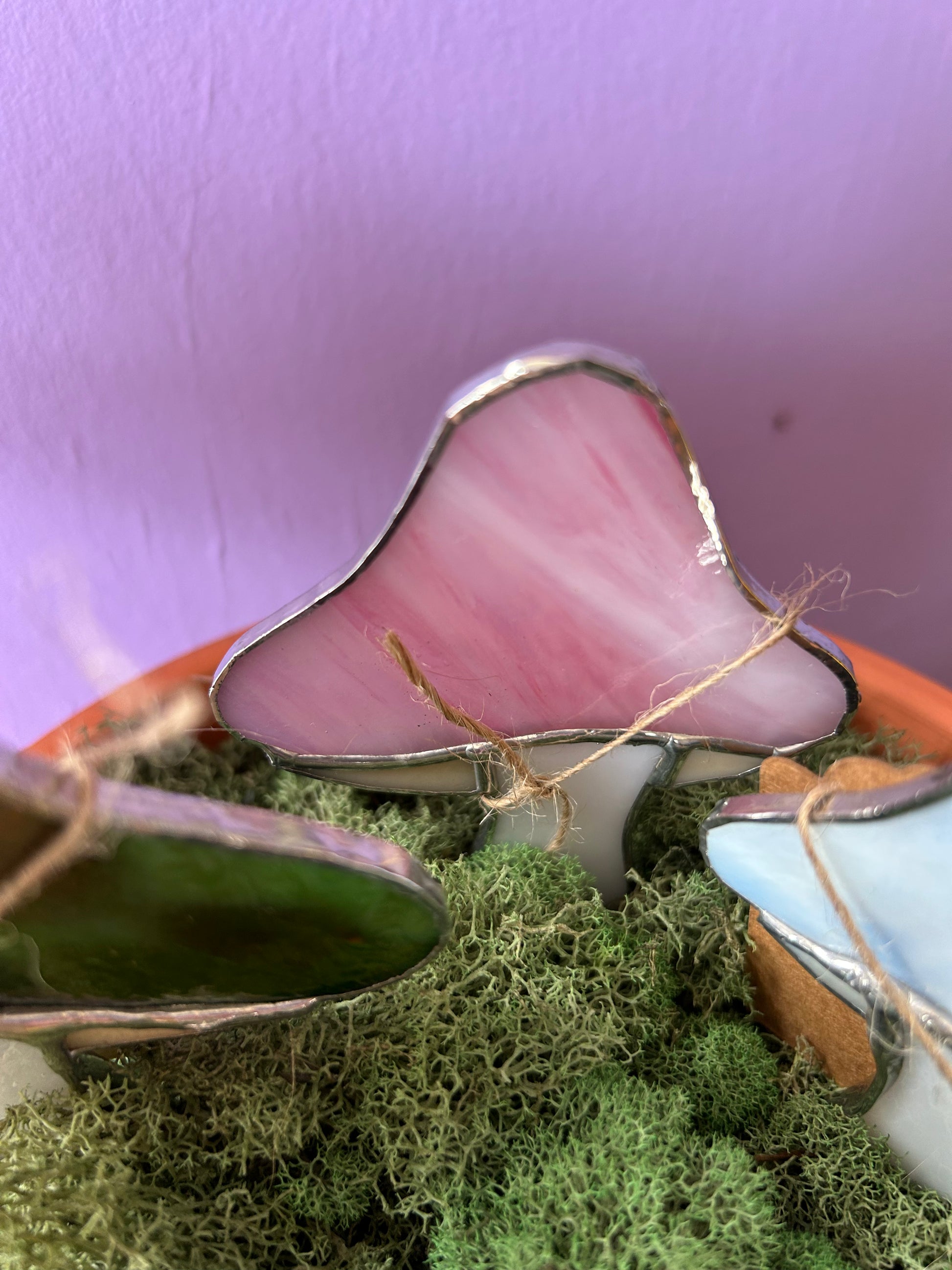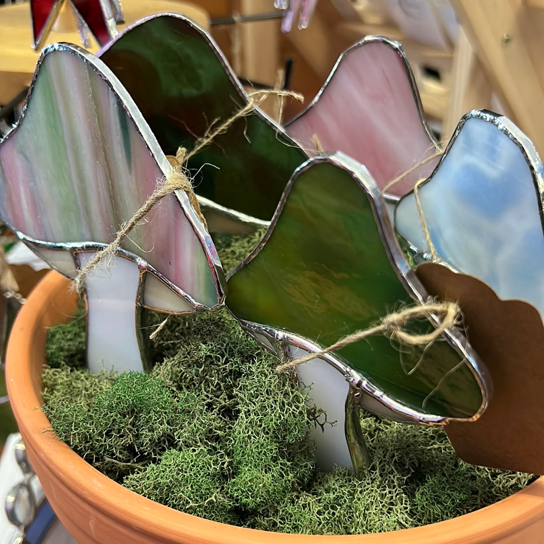 Handmade small stained glass mushroom for indoor planter pots