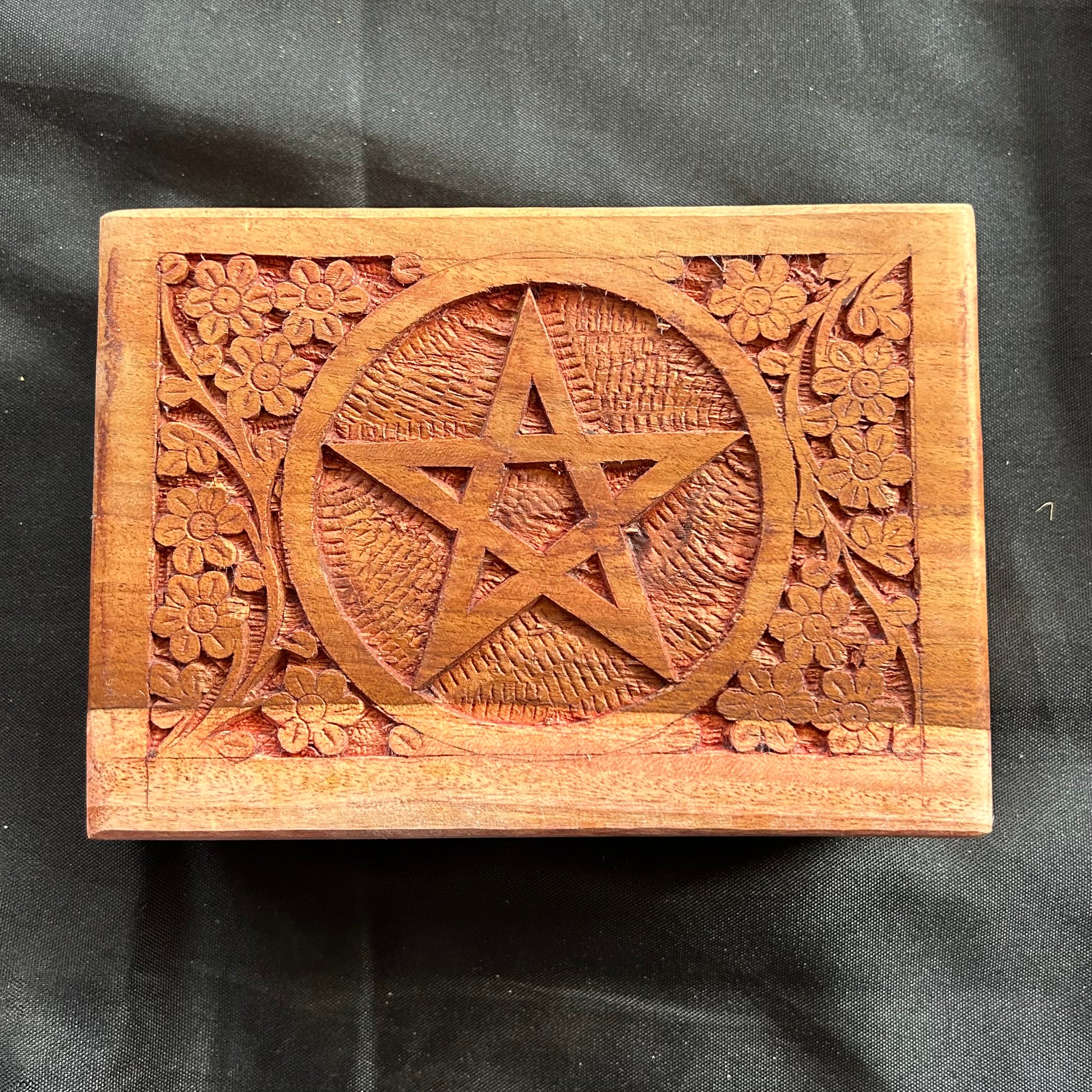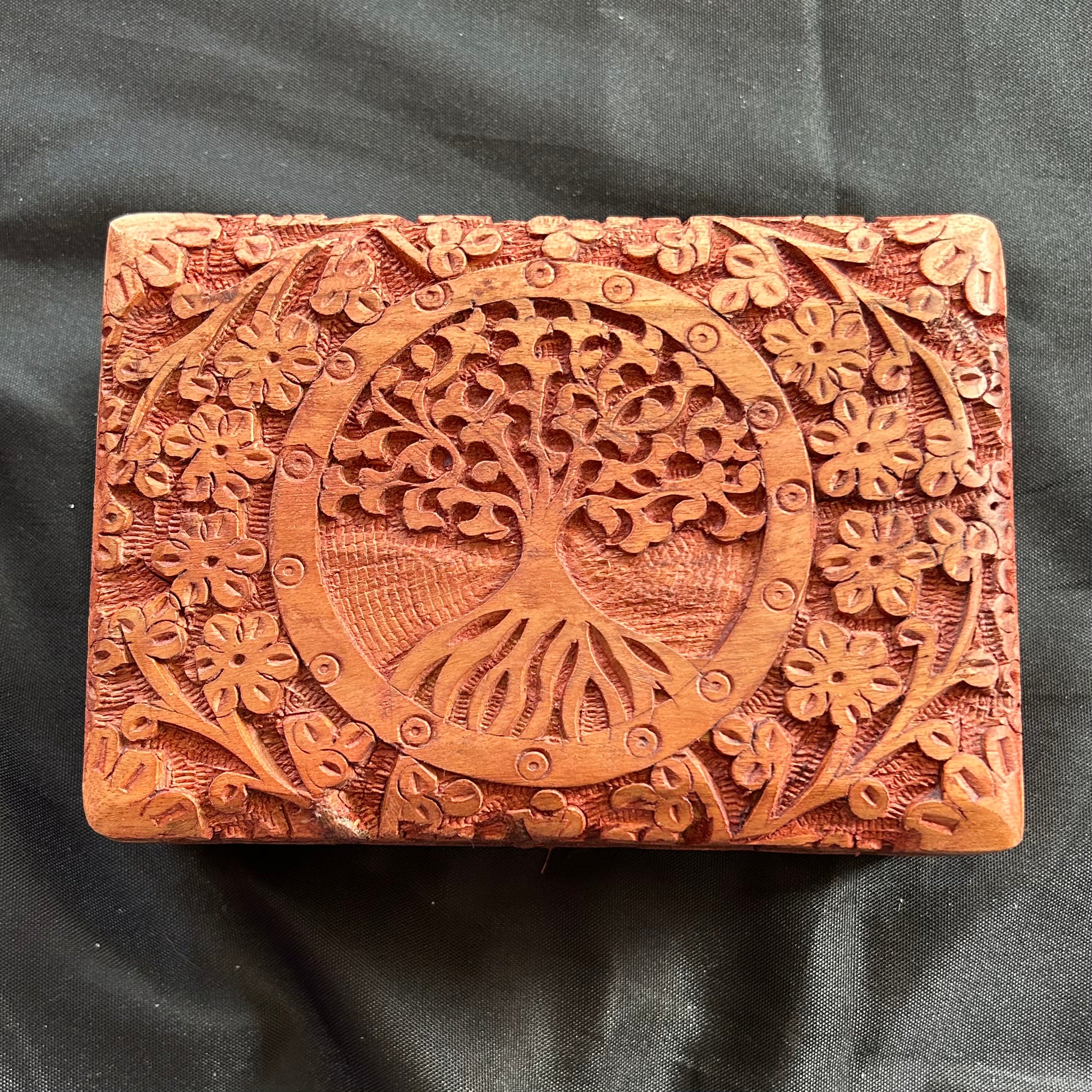 Large Carved Wood Box with Velvet Lining