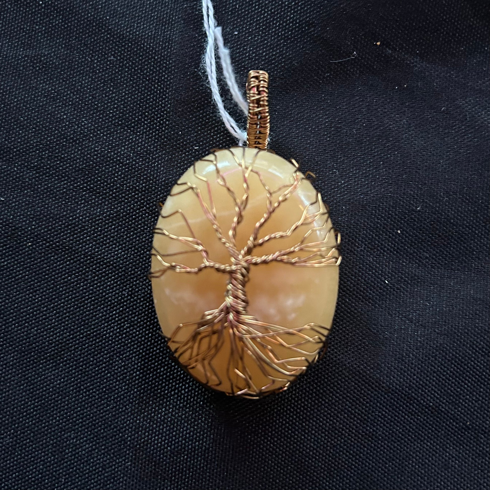 Hand wrapped aragonite pendant with Tree of Life wire wrapping
