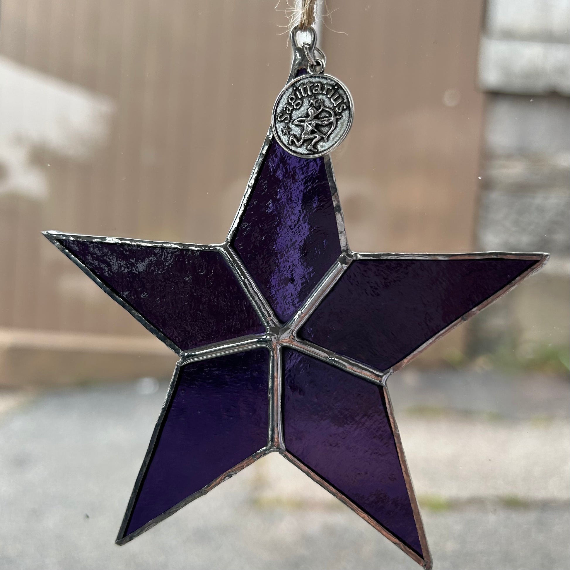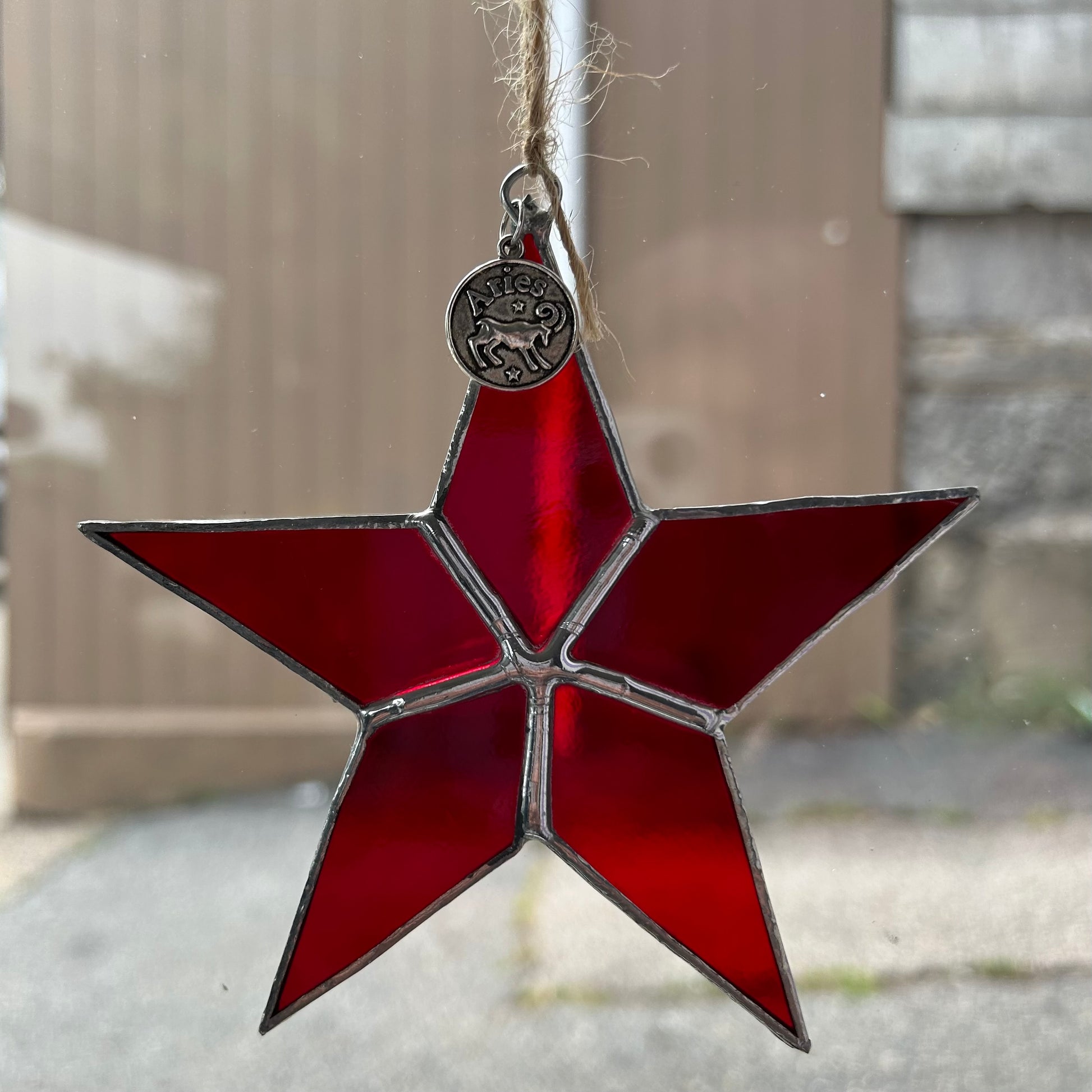 Handmade stained glass zodiac suncatcher made by DH Legacy Glass